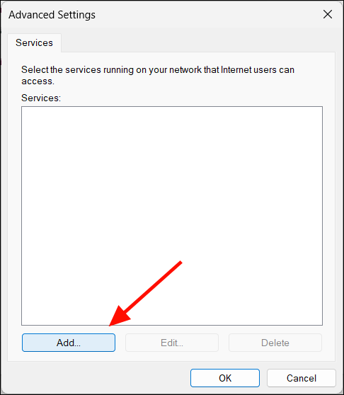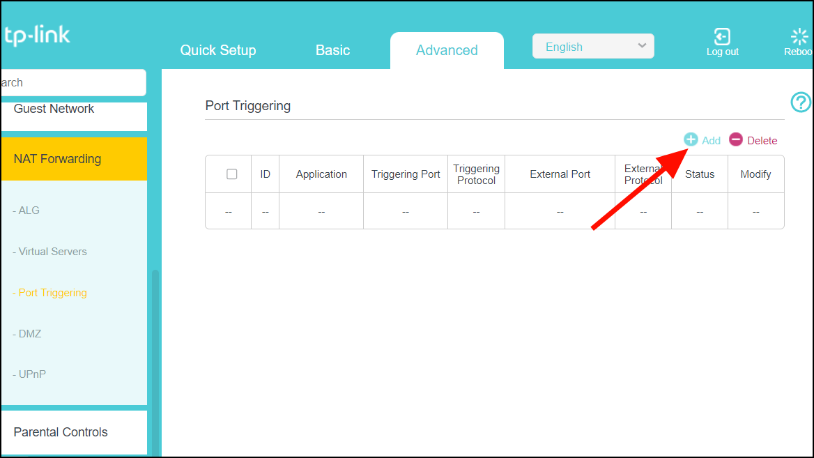 Step 4: Click Add or Add New to create a new port forwarding entry.