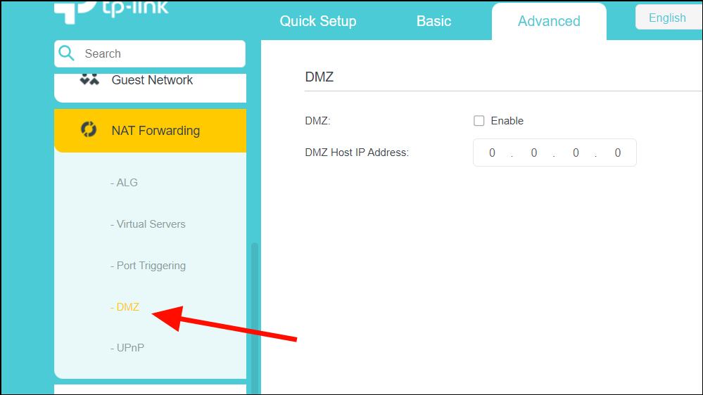 Step 2: In the left panel, select DMZ under the NAT Forwarding or Forwarding section.
