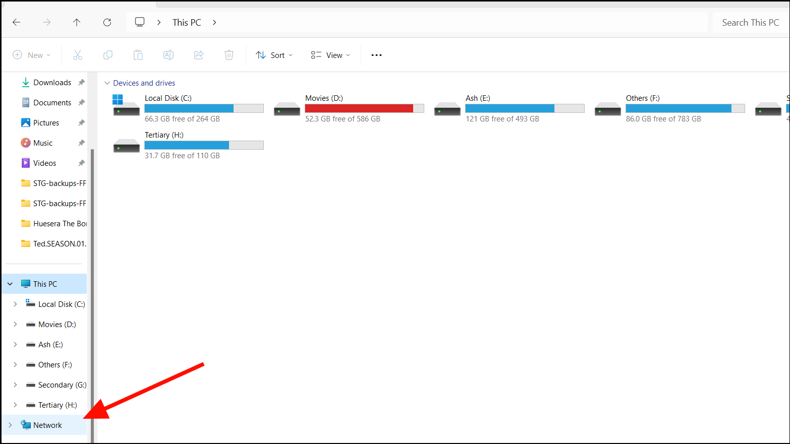 Step 1: Open File Explorer and click on Network in the left sidebar.