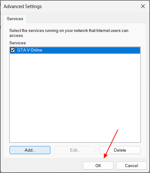 Step 7: Click OK to save the settings. Repeat these steps for additional services or applications if necessary.