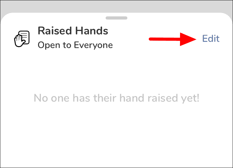 The ‘Raised Hands’ box will open, where you can see all the listeners who have raised their hand. Tap on the ‘Edit’ option at the top-right corner of the box.