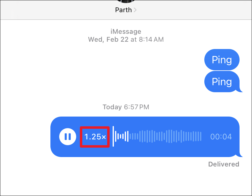 The message will now be played at the speed you have chosen, and the same will be mentioned right next to the pause & play button of the audio message.