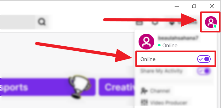 Change Presence Status on Twitch Desktop App