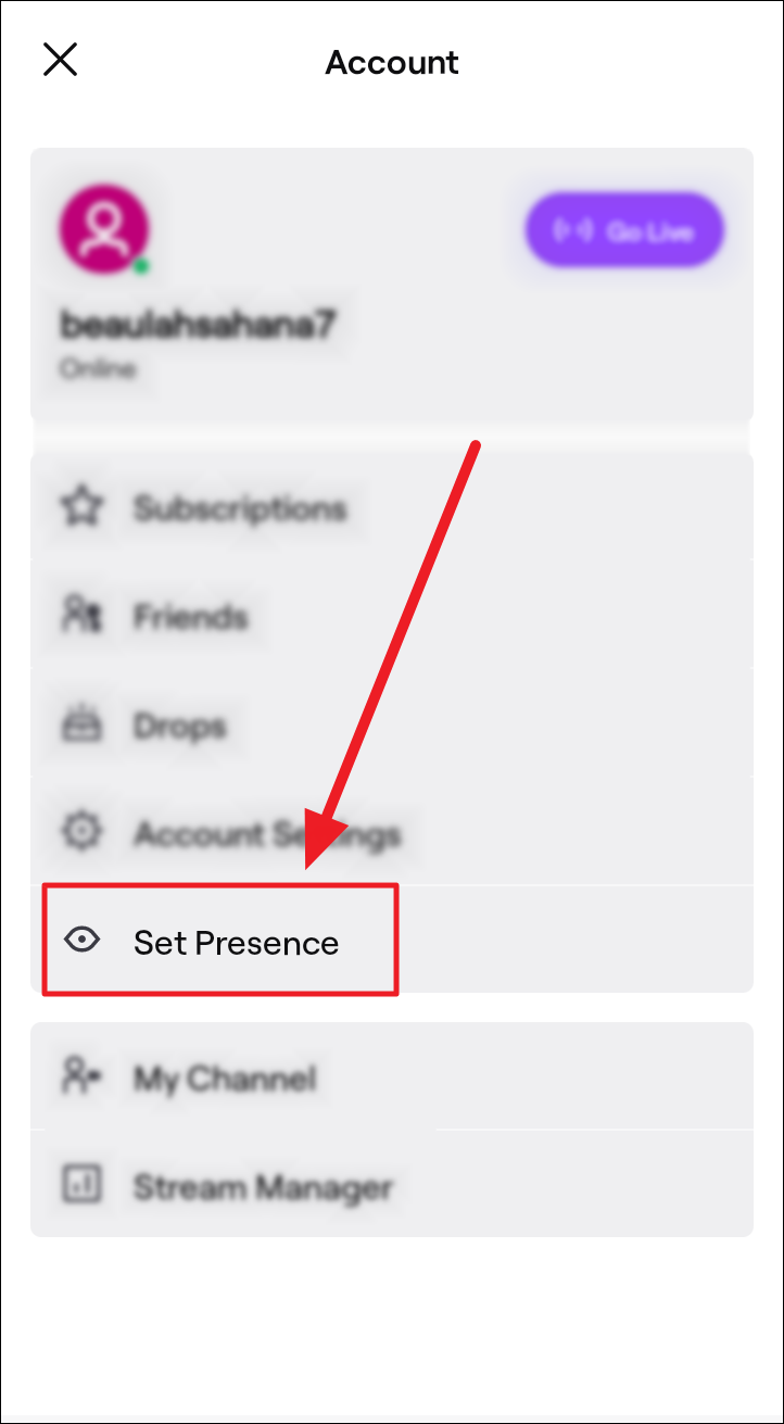 Change Presence Status on Twitch Mobile App