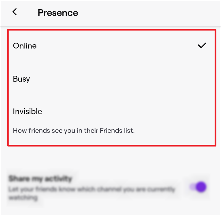 Note: The presence status you set on one device will reflect on all your Twitch devices.