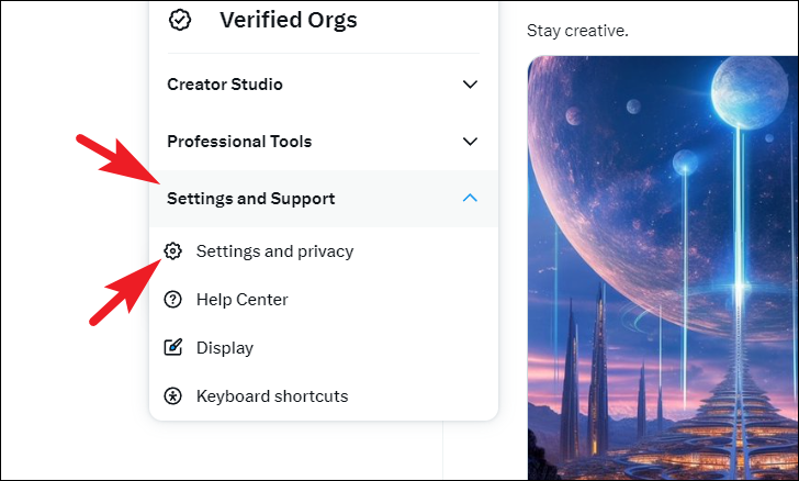 Then, expand the 'Settings and Support' option. Next, click on 'Settings and privacy' from the list.