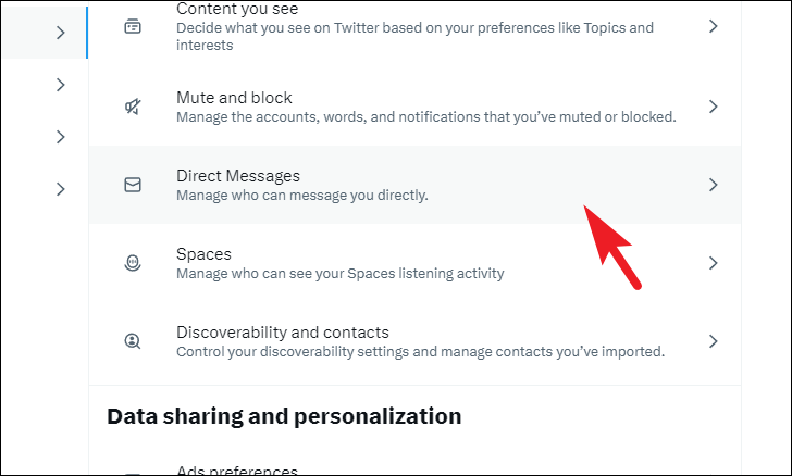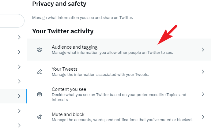 After that, choose the 'Privacy and safety' option. You should see all the settings falling under the category expanded to the right section of the screen.