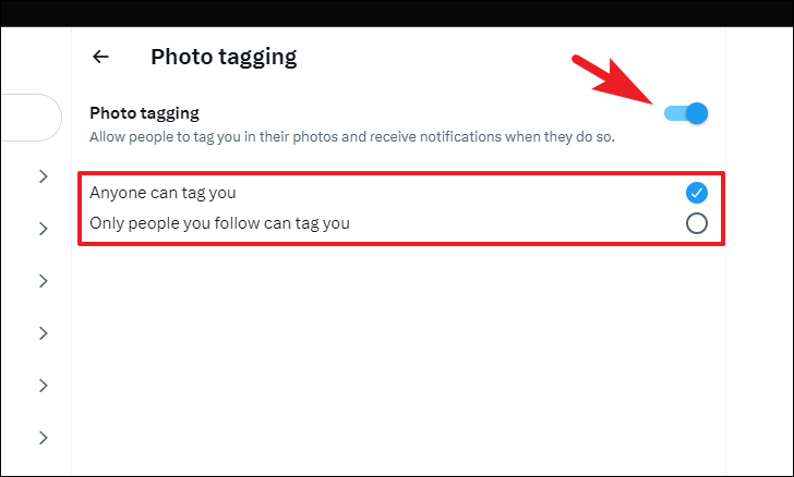 Then, select the 'Only people you follow can tag you' option. In case you do not wish to allow photo tagging at all, turn off the toggle following the 'Photo tagging' field.