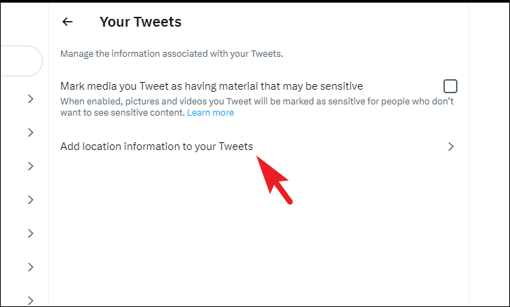 If you wish to add location information to your tweets or remove it from existing tweets, click on the 'add location information to your Tweets' to continue.