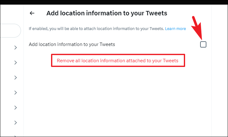 Then, to add it, click on the checkbox following the 'Add location information to your Tweets'. To remove the location information from all existing tweets, click on the 'Remove all location information attached to your tweets' option.