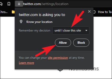 If you are on a browser, you might receive a pop-up to allow location access to the website. Choose the duration using the dropdown menu and click on the 'Allow' button. If you are on a mobile device you might receive a pop-up for the same.