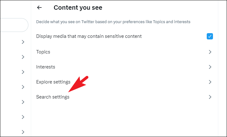 To include sensitive content and/or content from the blocked/muted account(s) in the search, click on the 'Search settings' tile. This will bring an overlay window to your screen.