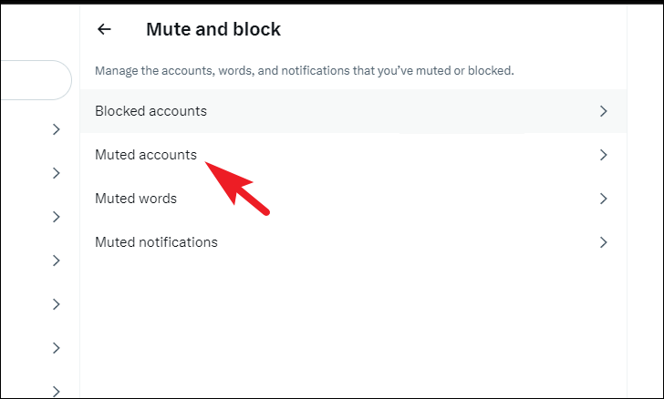 To unmute accounts, click on the 'Muted accounts' section.