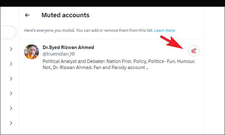 On the next page, click on the 'unmute' button following every account listing. Once unmuted, you will be able to see their posts and activity in the feed once again.