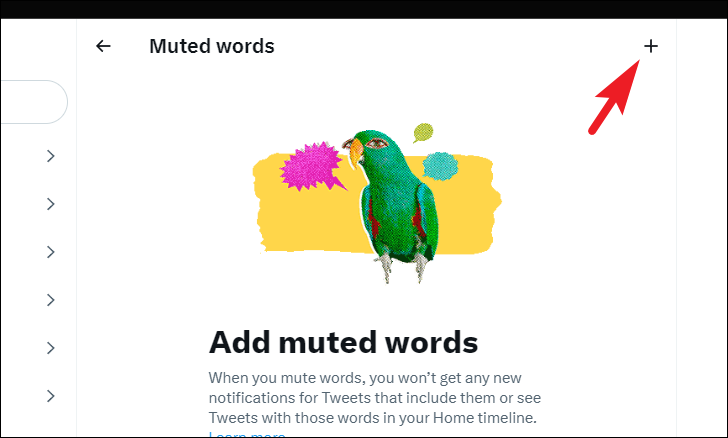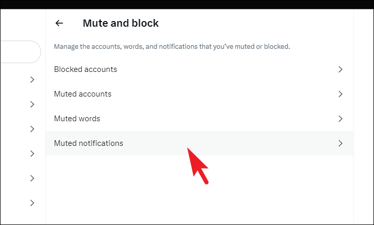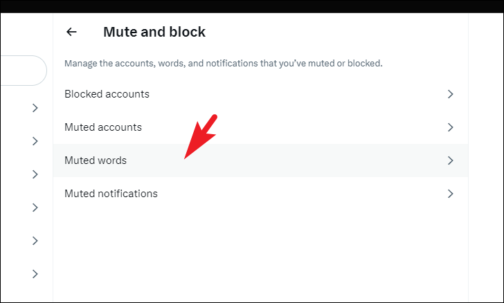 To mute a word, click on the 'Muted words' tile to proceed.