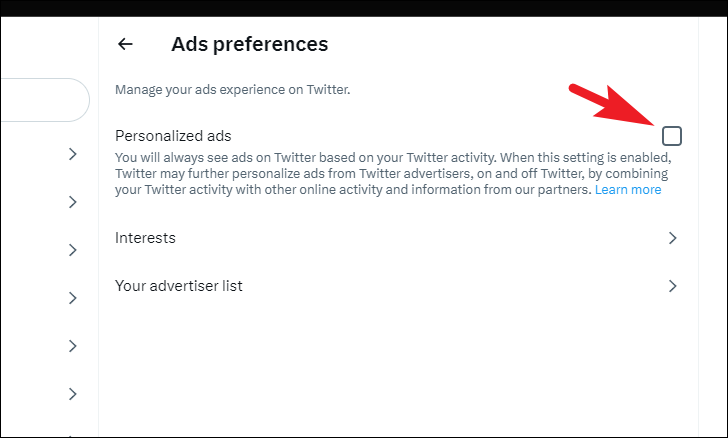 By default, Twitter displays personalized adverts to you; however, you can further personalize ads by sharing your online activity, on and off Twitter, with advertisers. Please note this will track your activity on other websites as well. Hence, only toggle it on if you are not heavy on privacy.
