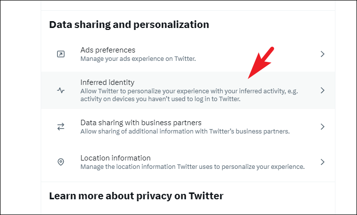 Twitter always uses the information and devices you use to log in to personalize your experience. However, when 'Inferred identity' setting is enabled, Twitter will use inferences like devices similar to yours (which you haven't used to log in), contact information similar to yours, and browsers other than what you use to further personalize your experience.