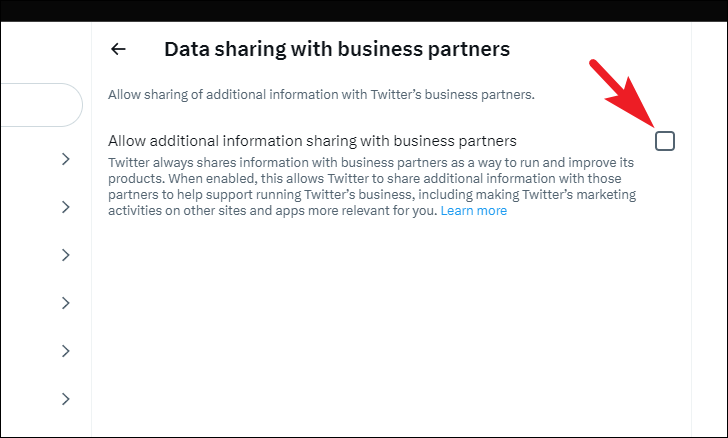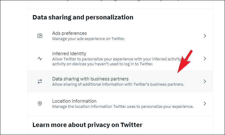 By default, Twitter also shares information with its business partners to better the experience for you. However, you can also opt-in for sharing additional data about your account to better the usability of the website. This may include your usage statistics, your activity on the Internet, your browser information, and much more.