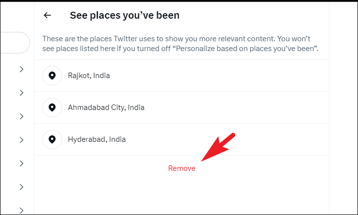 After that, you will see the list of all places you have used Twitter from. To delete the history, click on the 'Remove' button.