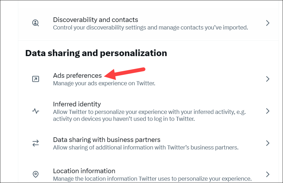 To share your complete online activity with Twitter advertisers, click on the 'Ads preferences' tile in the Privacy and Settings menu to proceed.