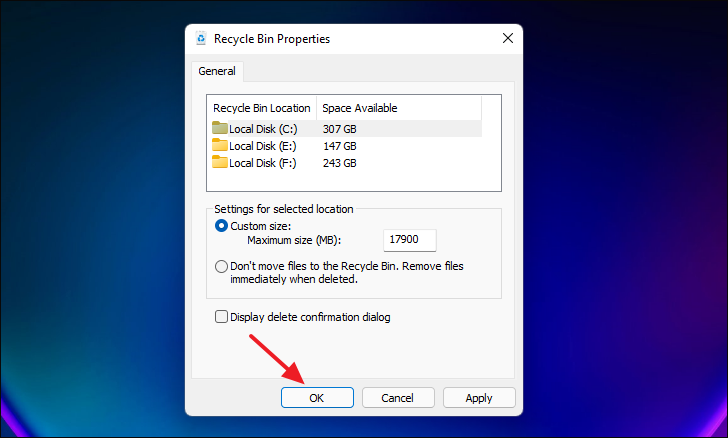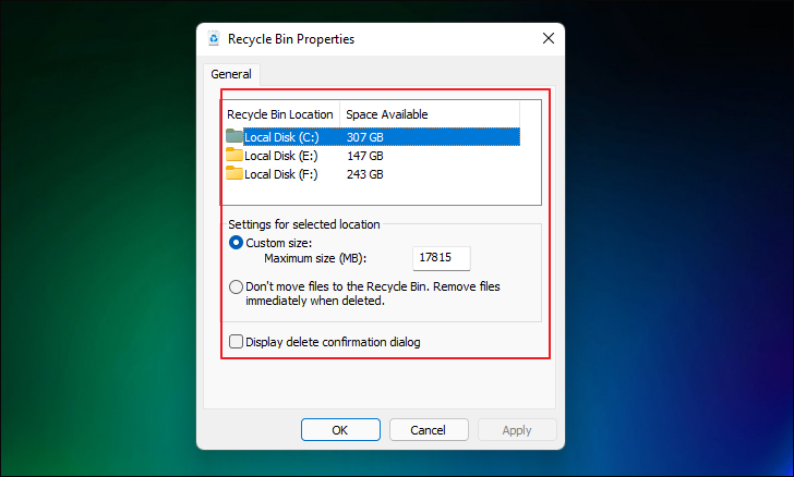 Adjusting the Recycle Bin settings helps you manage storage space more effectively. Whether you need more room to recover deleted files or prefer to bypass the Recycle Bin for certain drives, Windows 11 provides flexible options to suit your needs.