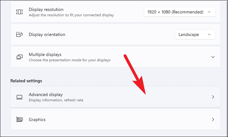 - Scroll down and click on Advanced display to access additional display settings.