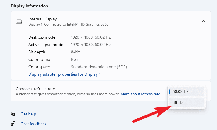 How to change monitor refresh rate in Windows 11 settings