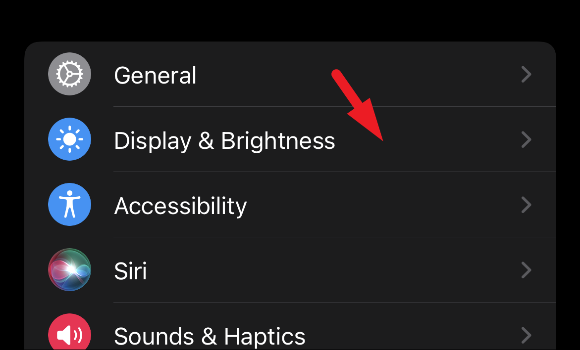 Then, on the ‘Settings’ screen, tap on the ‘Display & Brightness’ tile to continue.
