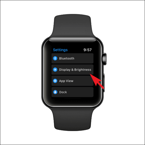 Then, from the ‘Watch’ app, locate and tap on the ‘Display & Brightness’ tile to proceed.