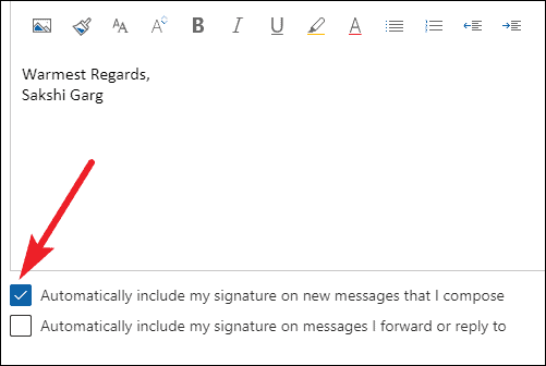 Edit the Signature in the textbox. You can also use the formatting options. It also has the options to edit when you want to include the signature: new messages you compose, and replies or forwards. Select the checkboxes accordingly.