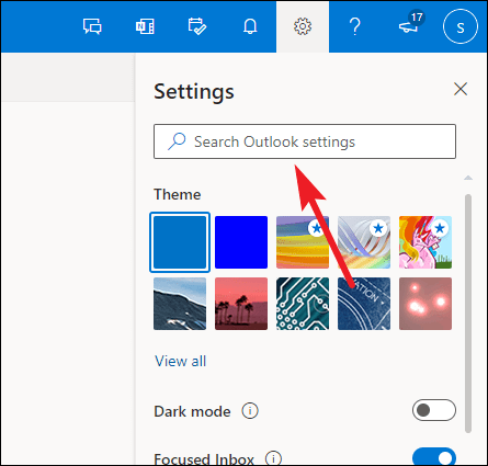 Go to outlook.com and login with your account. Click the ‘Settings’ icon from the toolbar on the upper-right corner of the screen.