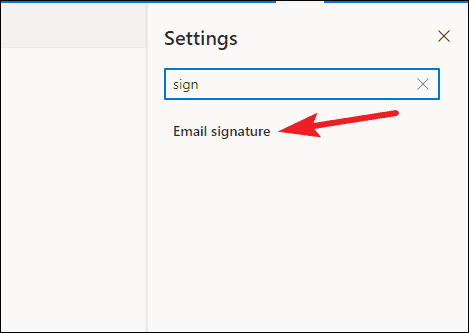 The settings pane will open on the right. You could navigate to the ‘Signature’ setting manually, or to access it quickly, go to the Search bar at the top and type “Signature”.