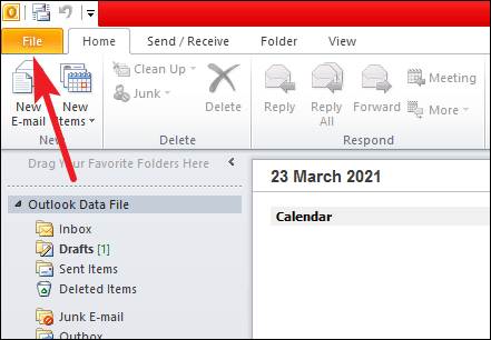 Open the Outlook app, and go to the ‘File’ menu option on the menu bar.