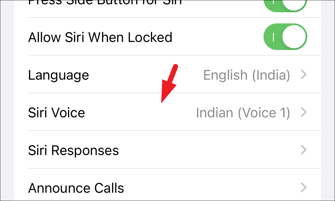 After that, locate the ‘Siri Voice’ option and click on the drop-down menu to reveal the list of options.
