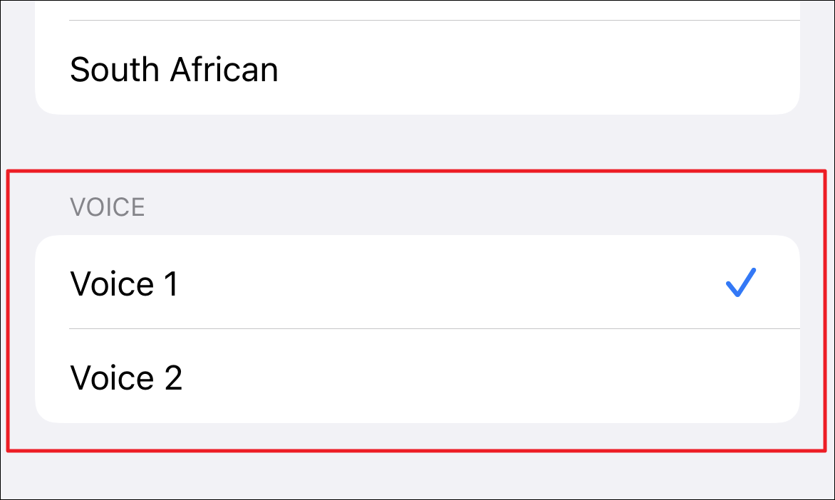 In case, you wish to change the gender, tap on the ‘Voice 2’ option present under the ‘Voice’ section. Then, you can also select the accent using the options present under the ‘Variety’ section on the screen.