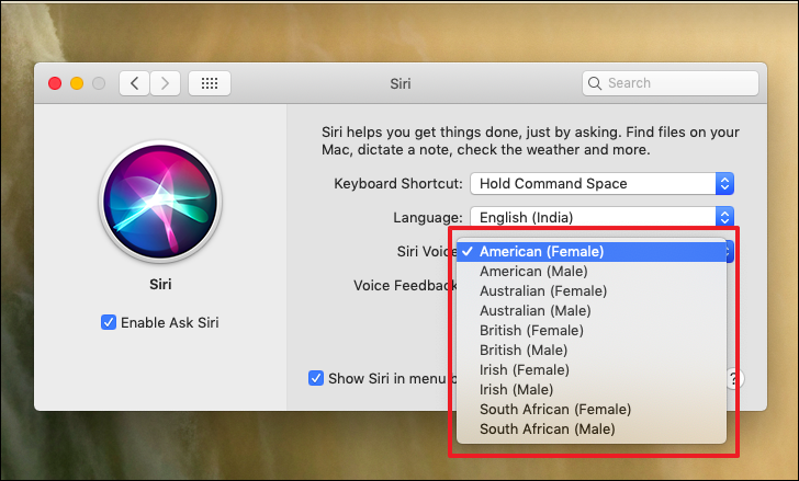 Similar to iOS, Siri’s voice can be changed via the System Preferences app on your macOS device.