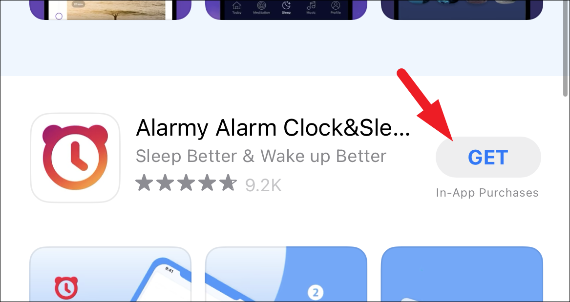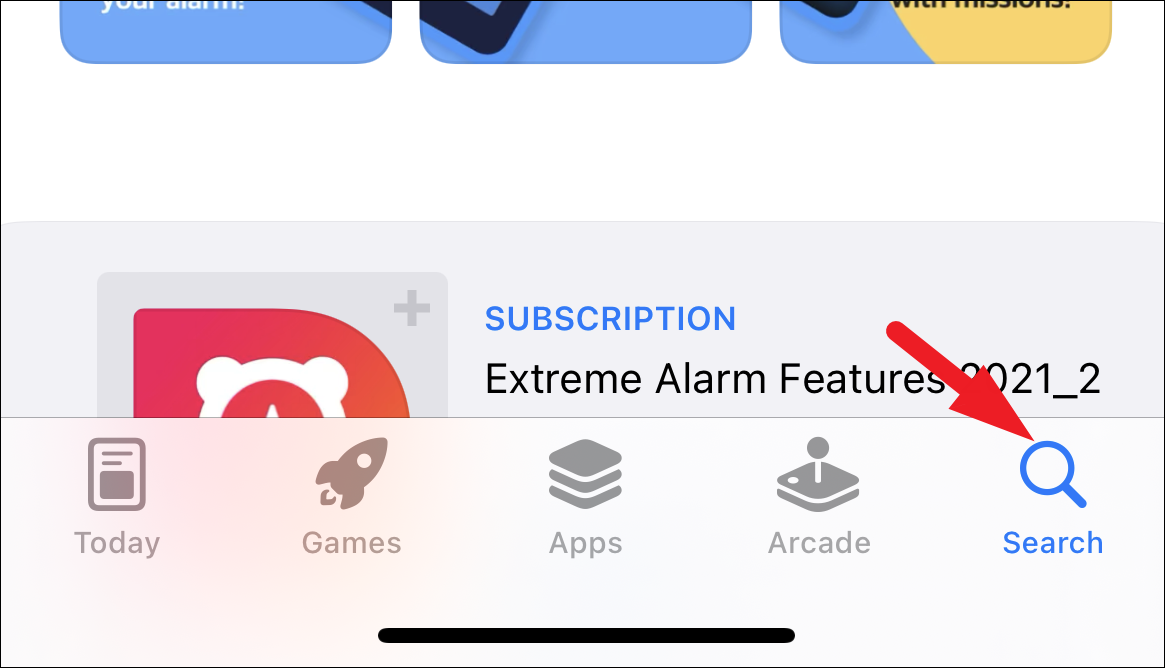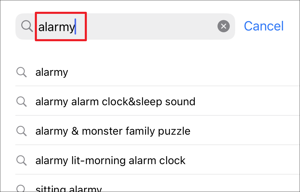 Now tap on the search bar and type ‘Alarmy’. After that, tap on the ‘Search’ button on the on-screen keyboard to perform a search.