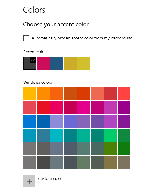 Step 5: After choosing your preferred color, check the box labeled Start, taskbar, and action center to apply the accent color to these elements. This option is located just below the color palette.