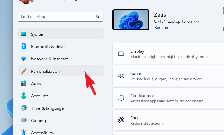 Step 2: In the Settings window, navigate to the Personalization section by clicking on it in the left-hand menu.