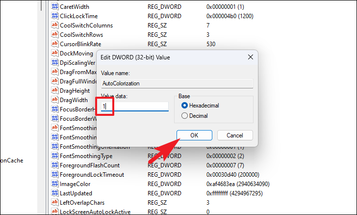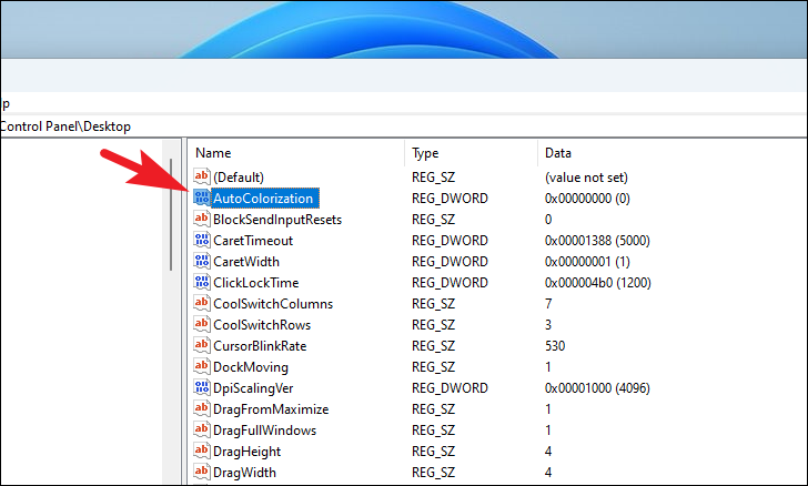Step 6: Locate the AutoColorization DWORD entry and double-click on it.