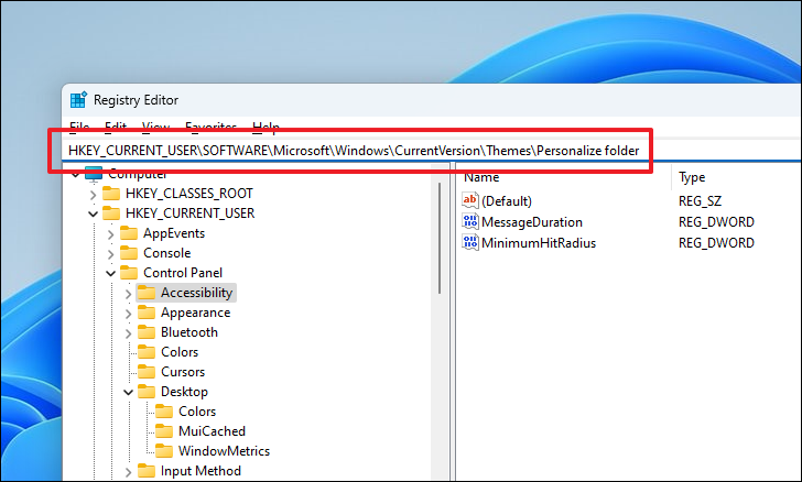 HKEY_CURRENT_USER\SOFTWARE\Microsoft\Windows\CurrentVersion\Themes\Personalize