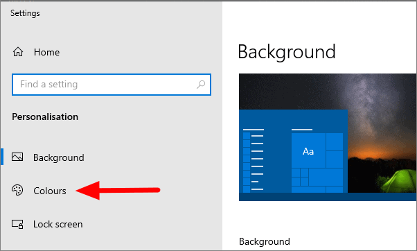 On the Personalisation window, click on ‘Colours’, to the left of the screen.