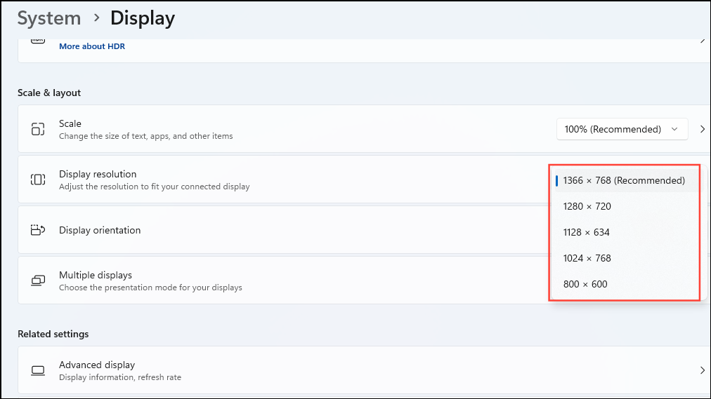 Step 3: Alternatively, you can adjust your display resolution to indirectly affect the taskbar size. Increasing the resolution makes elements smaller, while decreasing it enlarges them. Experiment with these settings until you achieve your desired taskbar size and overall display comfort.