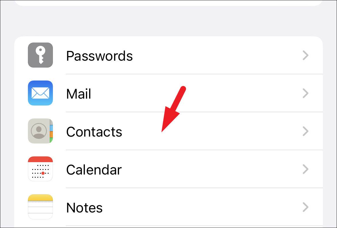 After that, locate and tap on the ‘Contacts’ option from the list to continue.