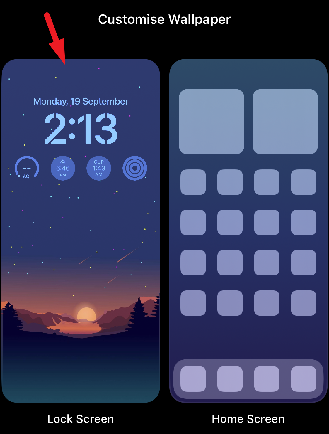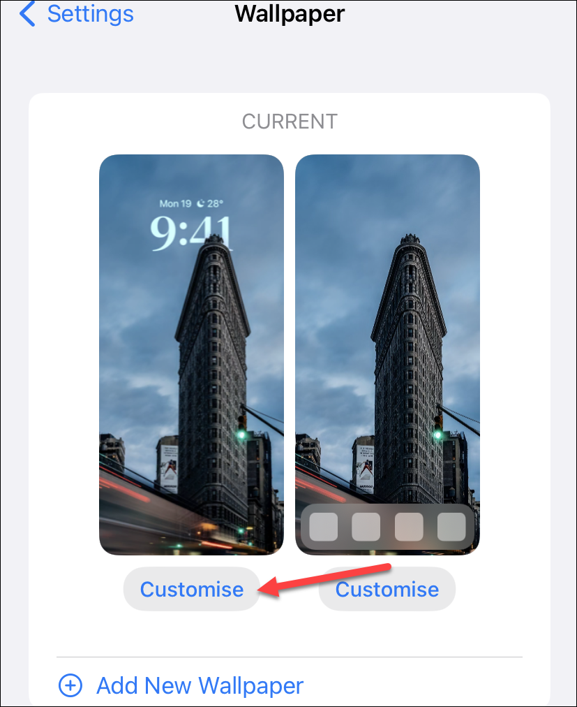 Then, tap the ‘Customise’ button underneath the Lock Screen preview thumbnail.
