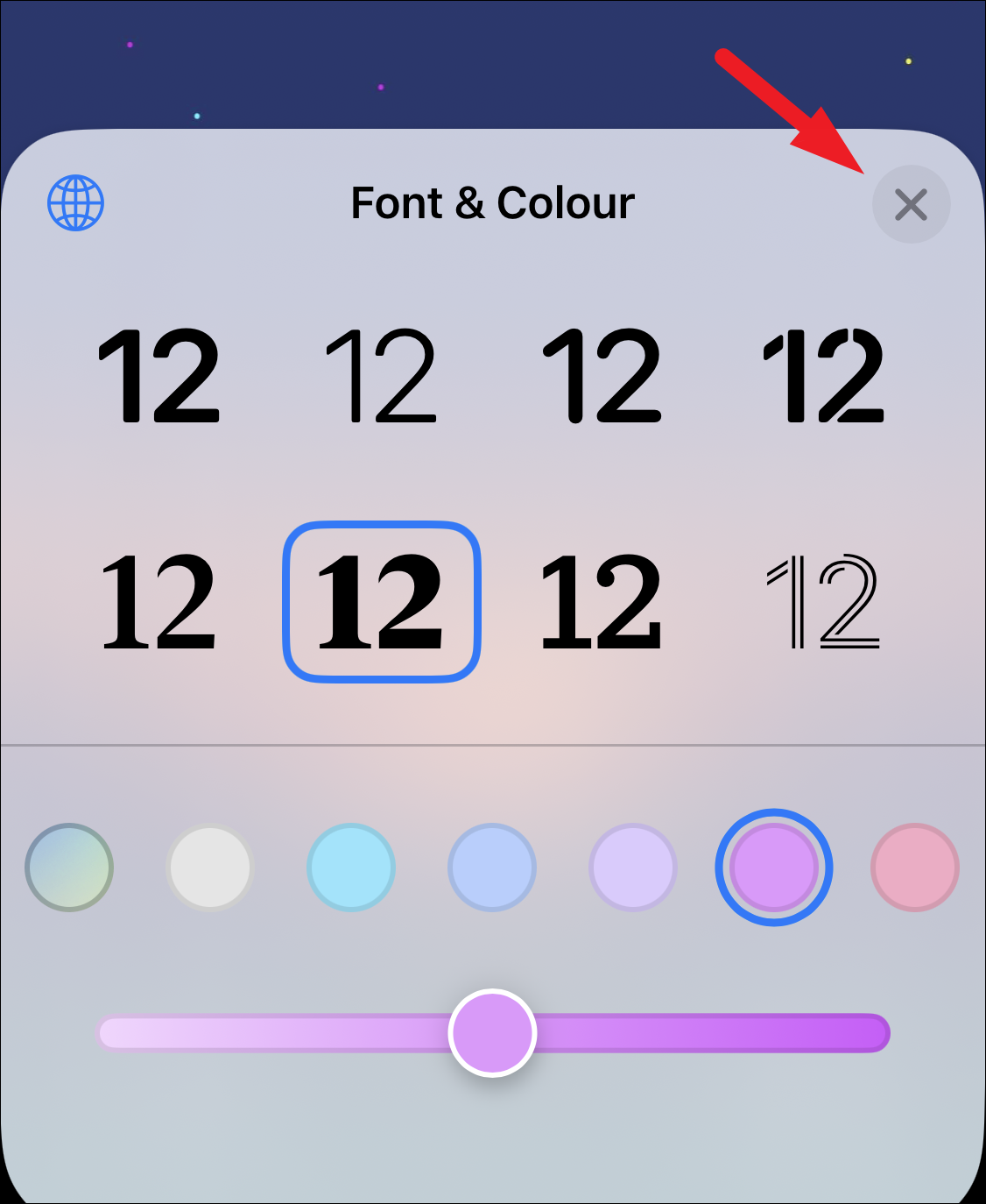 Once done, either tap on the ‘X’ button on the overlay pane or anywhere else on the screen to close the ‘Font & Color’ pane.