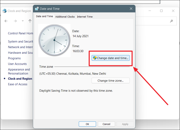 Change Time on Windows 11 From Control Panel