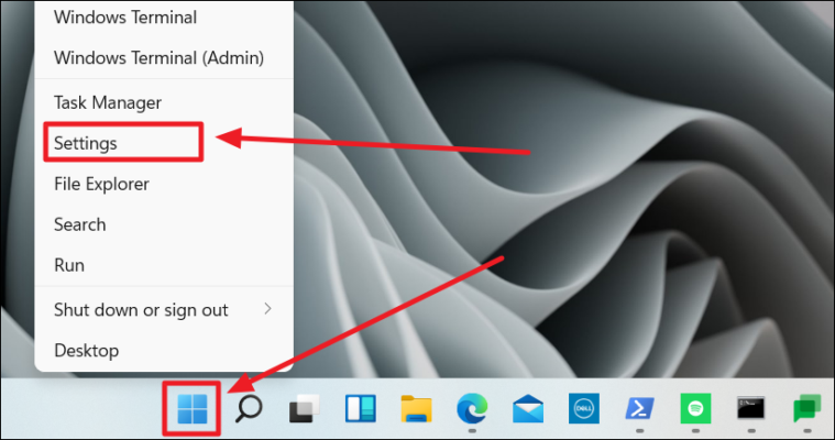 Launch the ‘Settings’ app by right-clicking on the ‘Start’ button and choosing ‘Settings’ from the pop-up menu.