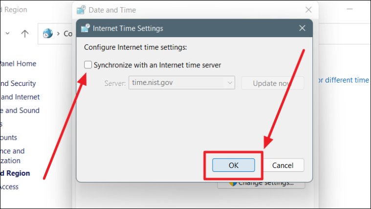 How to Sync Time or Remove Sync with the Internet Time Server