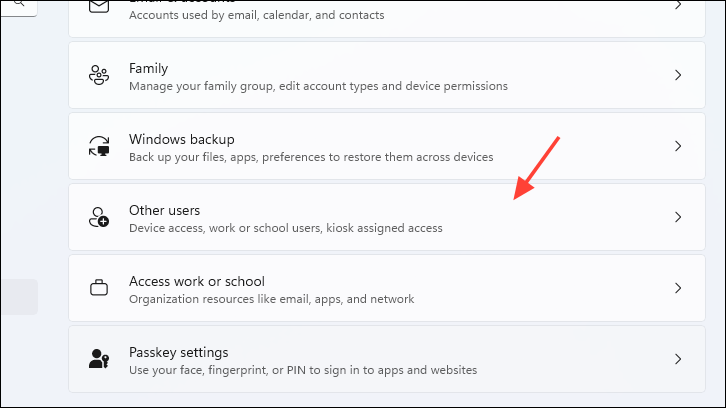 Step 2: In the 'Accounts' section, click on 'Other users' on the right side.